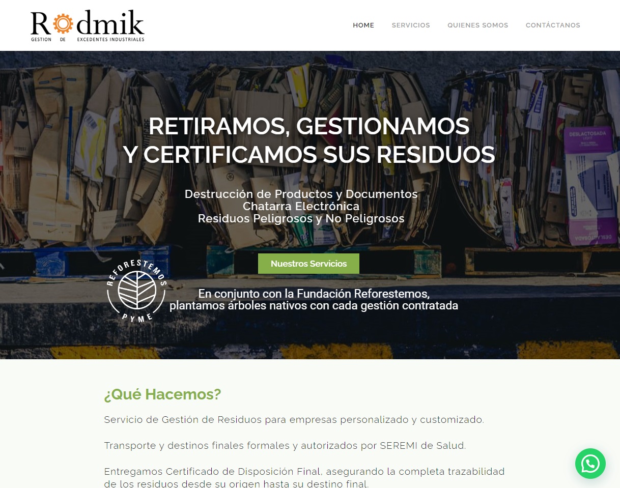 Sitio web moderno para la gestión de residuos industriales, diseñado con visuales atractivos y funciones interactivas.